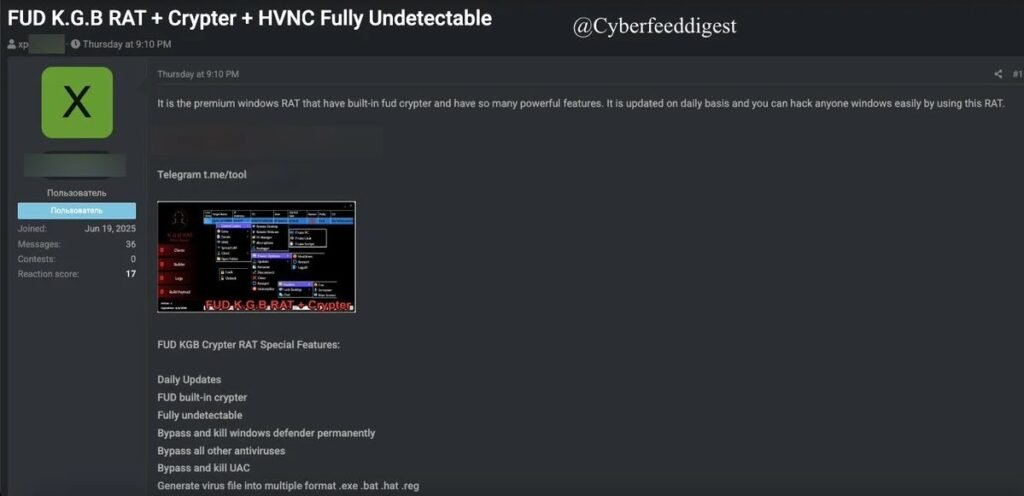 The underground cybercriminal ecosystem has witnessed a worrisome development – the rise of a highly sophisticated remote access trojan (RAT) known as K.G.B. RAT. This weaponized software, now readily available on forums frequented by threat actors, poses a significant risk to organizations across various sectors. The K.G.B. RAT package is more than just a standard RAT; it’s a meticulously crafted toolkit boasting advanced evasion techniques and robust capabilities for covert attacks.